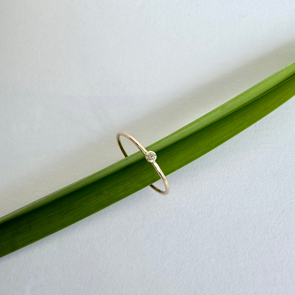 14k gold ring with round white diamond 2 mm.
