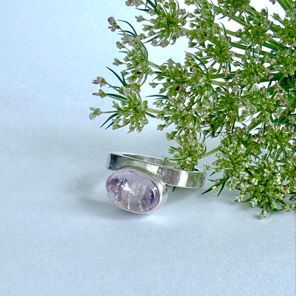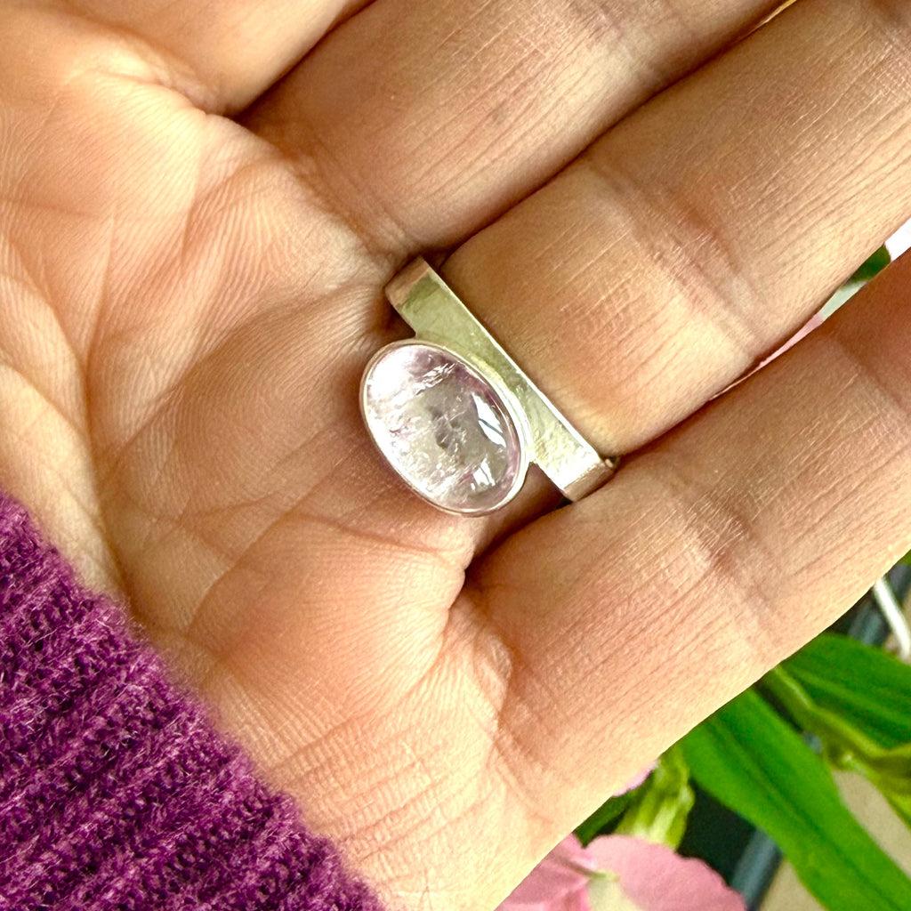 One of a kind sterling silver ring with morganite cabochon.